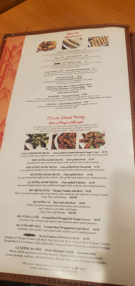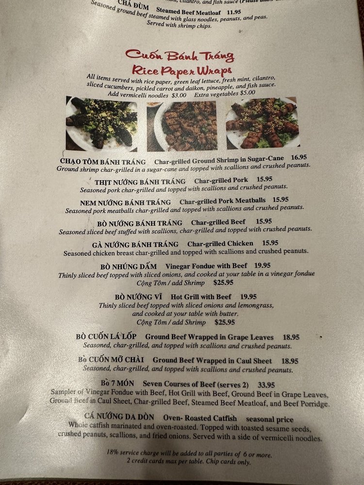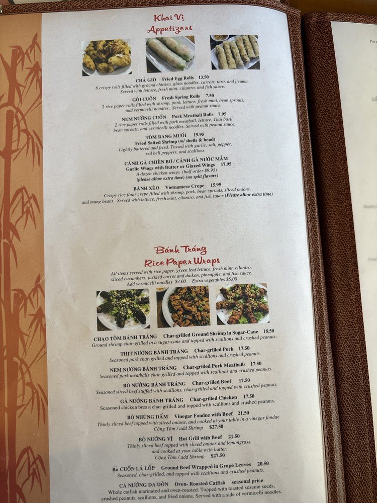 Phuong Trang, a beloved restaurant located in San Diego, offers a wide range of Vietnamese cuisine. From traditional appetizers like Fried Egg Rolls and Fresh Spring Rolls to delectable Rice Paper Wraps featuring Char Grilled Ground Shrimp and Pork Skewers, the menu is a delight for food enthusiasts. Hot Pots like Seafood Hot Pot and Thai Style Hot Pot with Cat Fish showcase the restaurant's commitment to authentic flavors. Customers praise the fresh produce, generous portions, and attentive service, making it a top choice for family celebrations. The oven-roasted catfish is a standout dish that consistently impresses diners. With a rich history and communal dining experience, Phuong Trang captures the essence of Vietnamese cuisine with universal appeal.